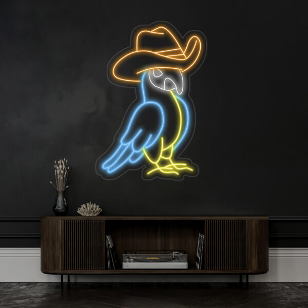 Cowboy Parrot Neon Light, Parrot Cowboy Led Light, Parrot Cowboy Hat Led Sign, Cowboy Parrot Bird Neon Sign, Western Room Wall Art Decor