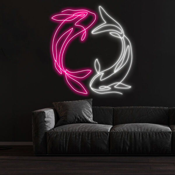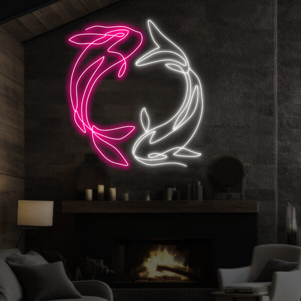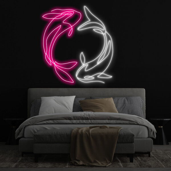 Custom Koi Fish Neon Sign – Yin Yang-Inspired Pink and White LED Wall Art for Home, Office, or Café Decor – Unique Zen Neon Light Gift