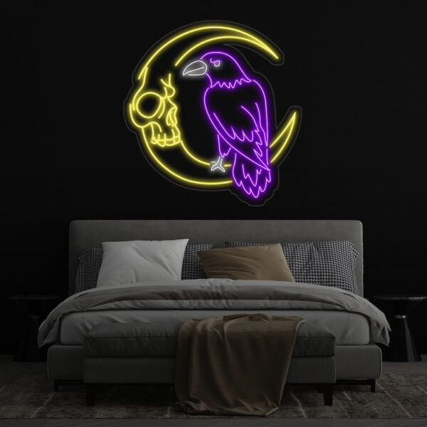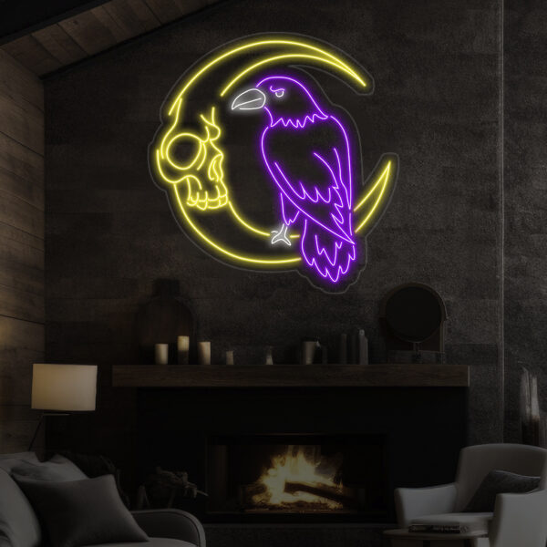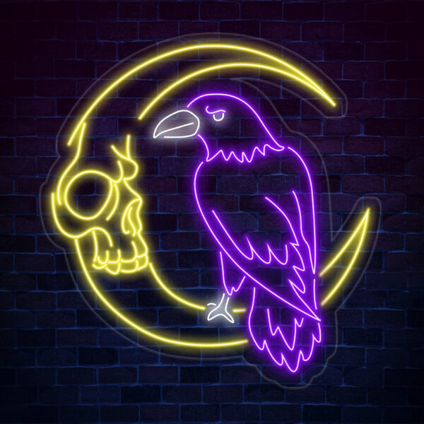 Custom Raven And Moon Skull Neon Sign, Raven Led Sign, Raven Neon Light, Bird Led Light, Animal Wall Art Light, Gift for Bird Lover