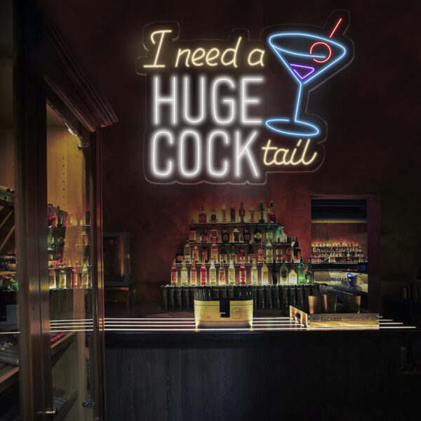 I Need A Huge Cook Tail Neon Sign, Custom Bar Club Neon Signs, Neon Sign Home Bar Decor, Bar Decoration Neon Lights, Humor Gifts