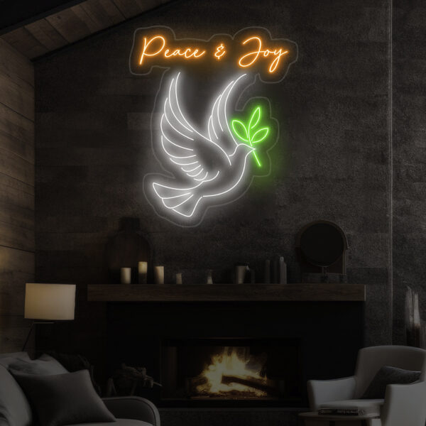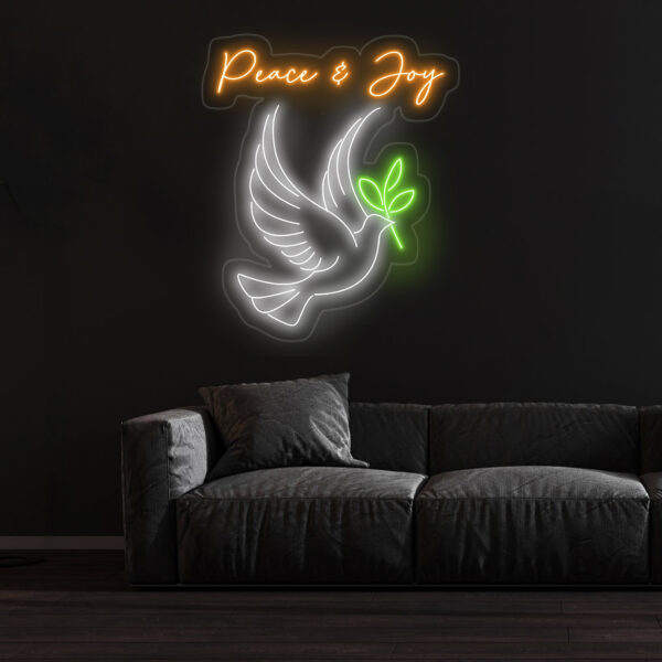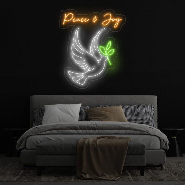Peace And Joy Neon Sign, Dove Led Sign, Dove Bird Neon Light, Peace & Joy Dove Led Light, Quote Room Wall Art, Dove Bird Home Wall Decor