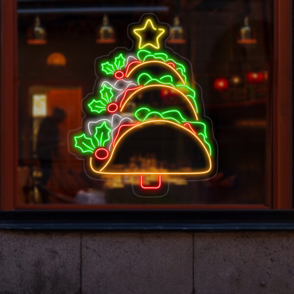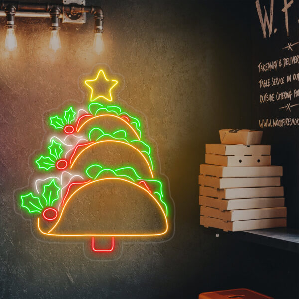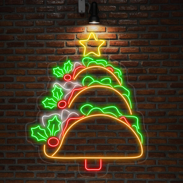 Taco Christmas Tree Neon Sign, Fast Food Light, Mexican Tacos Led Lights, Mexican Food Neon Light, Shop LED, Restaurant Decor